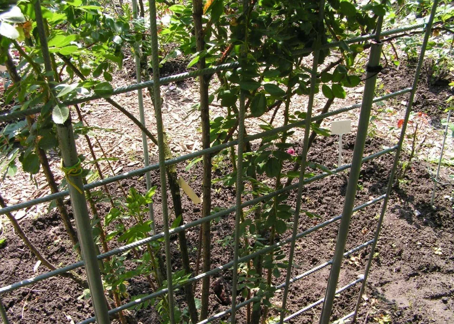 На наступному етапі створені трикутники стикуються за допомогою перемичок горизонтального спрямування. На опору приварюється дріт, що виступає першим поряд. У такому разі висота по встановленню дорівнює 20 см щодо ґрунту. Що стосується наступного верхнього ряду, він розташовується на висоті вже 30 см, далі до верху витримується параметр 40 см.