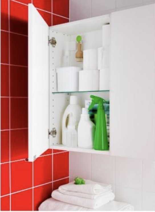 - скло — для виготовлення настінних шаф ванних кімнат використовують його загартовані види. Виглядають такі шафи дуже ефектно та актуально. Скло не страшна волога, меблі з нього виглядають легкими і витонченими, тому не створюється відчуття захаращення простору. Але при виборі таких шафок потрібно пам’ятати, що доведеться стежити за порядком не тільки в приміщенні ванної кімнати, але і в самих шафках, так як безлад і хаос будуть видно крізь прозорі або напівпрозорі стінки. Кути шафки, виготовленої зі скла, згладжуються з метою підвищення безпеки експлуатації. На глянцевій скляній поверхні буде видно кожну випадкову краплю води, тому доведеться часто і ретельно протирати меблі такого типу;