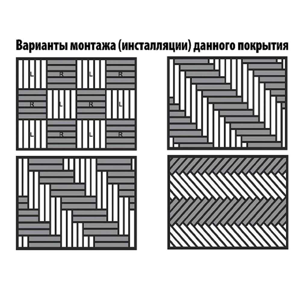 Гідність вінілової підлоги з ПВХ у тому, що вони можуть укладатися не просто одним полотном – можна створювати на підлозі різні малюнки. Найбільш популярні паралельний спосіб укладання (вздовж стін, шви йдуть у напрямку світла) або діагональний. Але також можливий монтаж типу “ялинка”, “плетінка” і т.д.