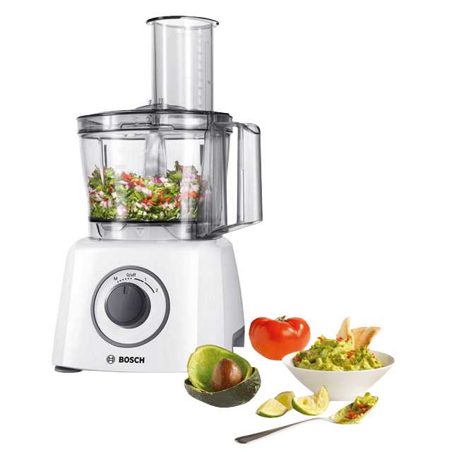 Ще один гідний представник лінійки Bosch потужністю 800 Вт, укомплектований трьома насадками, що дозволяють виконувати багато кулінарних маніпуляцій. Він оснащений великою чашею з міцного прозорого пластику, об’єм якої становить 2.3 літра. Кришка чаші має завантажувальний отвір та штовхач.