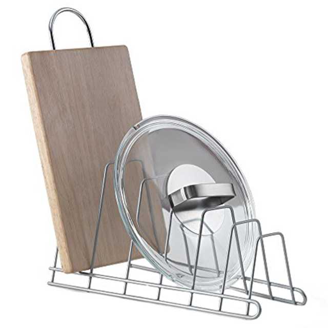 Кришкам, яких у господарстві багато, знайти оптимальне місце на кухні непросто. Але попит народжує пропозицію, і виробники, які тримають ніс за вітром, вже налагодили випуск різних пристроїв для зберігання цієї категорії посуду. Наприклад, настінні та настільні стійки. Перший варіант найбільш зручний та компактний. Ця вертикальна система зберігання не займе багато простору вашої кухні, зате 5-6 кришок знайдуть своє місце. Для тих, хто принципово не хоче кріпити різні органайзери до стіни з новим ремонтом, виробники пропонують зручну настільну підставку. У ній можна зберігати не тільки кришки різного розміру, але й дошки, а також плоскі страви великого діаметру.